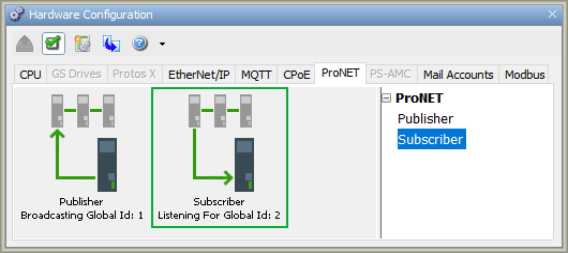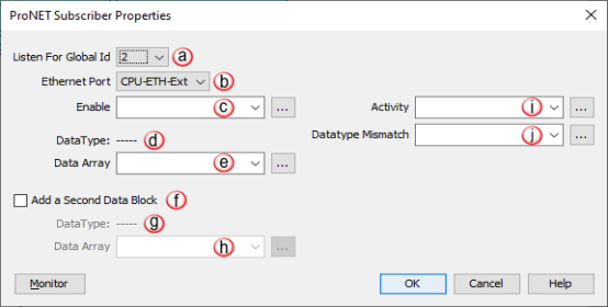 Ethernet Port: By default the ProNET Subcriber will use the CPU External Ethernet port (CPU-ETH-Ext). If the CPU has a second Ethernet port that is user configurable, the Remote Ethernet port (CPU-ETH-Remote) can be selected as port the ProNET Subscriber uses.