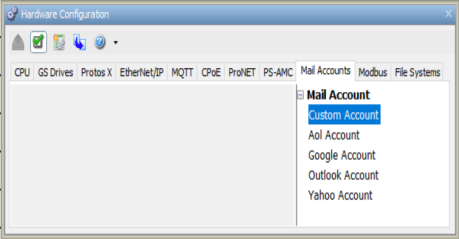 In order to send an email from the PLC, the Send Email (EMAL) instruction requires that you have an e-mail server widget defined and configured. The widget contains the necessary network communication settings for an e-mail server external to the PLC. The external mail server can be from an e-mail provider (such as Gmail) or can be set up inside an organization (such MS Exchange). The programming software provides preconfigured templates for 4 common e-mail providers. It also provides a generic template that can specify any desired e-mail server.