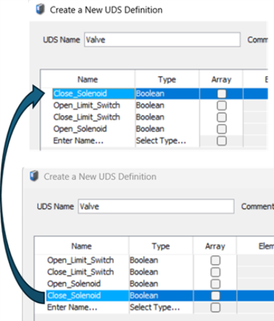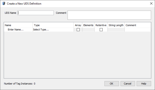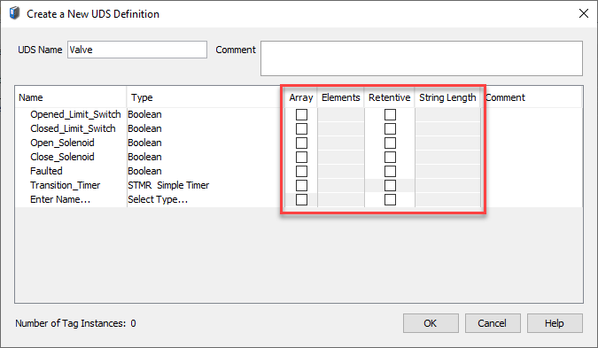 Note: When creating an array of user-defined structures (UDS), the System and Module data types cannot be defined.