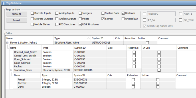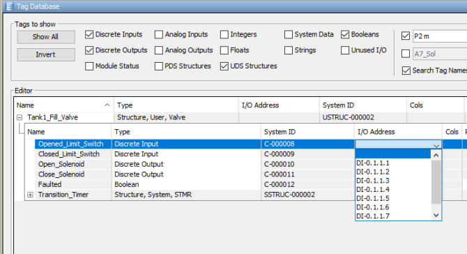 Elements of existing or new UDS Tags that are configured for UDS Valve Type are now assigned Discrete Input/Discrete Output as Datatype (note that system ID is still assigned a C - internal Boolean).