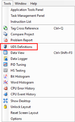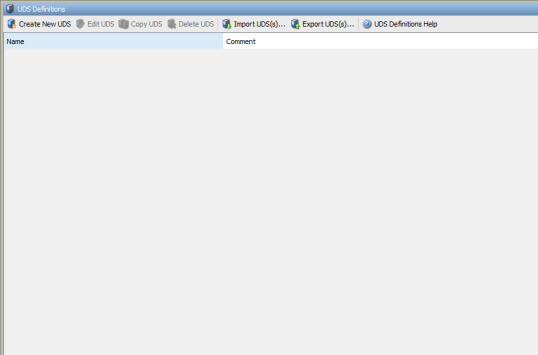 The UDS Definition window is accessed by selecting Import UDS(s) from the Tools Menu or by selecting UDS Definitions from the Write Program folder of the Application Tools panel.