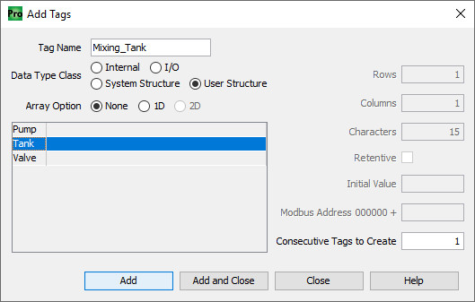 Second, in the Tag Database create a Tag for a Mixing Tank.