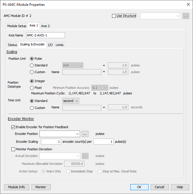 ** Important Note: Encoder Monitor and Monitor Position Deviation are raw pulses and do not follow the Axis Scaling.