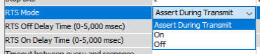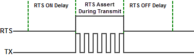 • Assert During Transmit: Make the RTS signal turn ON in the time between the RTS ON delay and RTS OFF delay.
